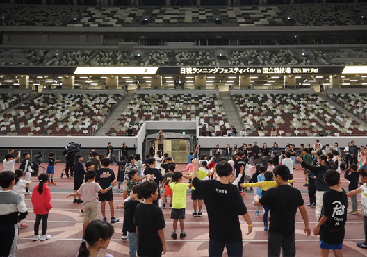 • 2024年10月、創立50周年記念として国立競技場でのランニングイベントを実施し、本社所在の新宿区および会場隣接の渋谷区の小学生を対象に「かけっこ教室」を行いました。