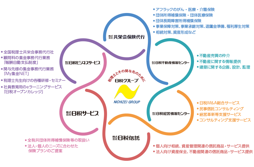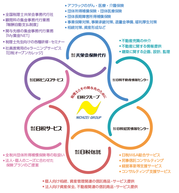日税グループでは保険をはじめ、不動産、事業承継・M&A、信託などあらゆる課題に対するスペシャリストが在籍しております。